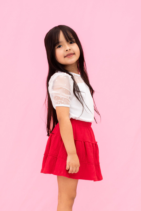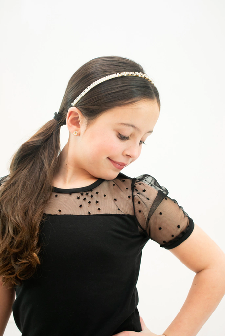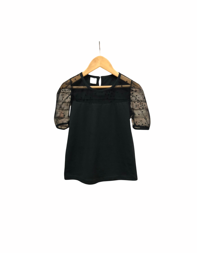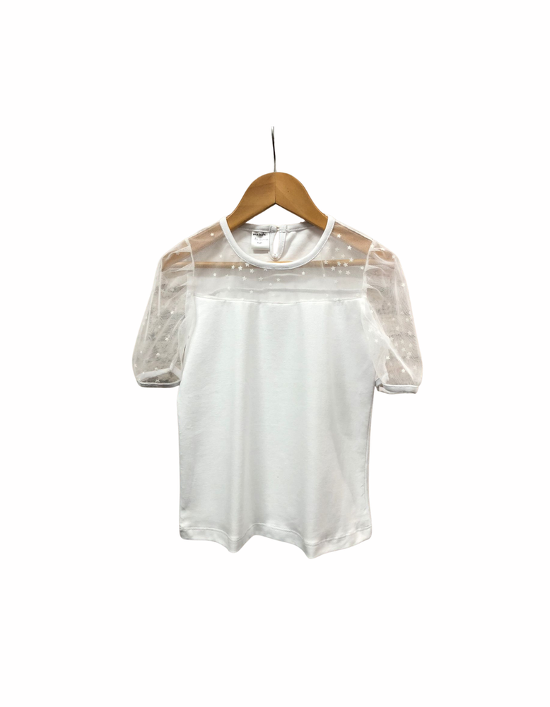 Remera Algodon lycra Con recorte en tul con estrellas. Manga armada. Ideal para completar conjutnos de fiesta