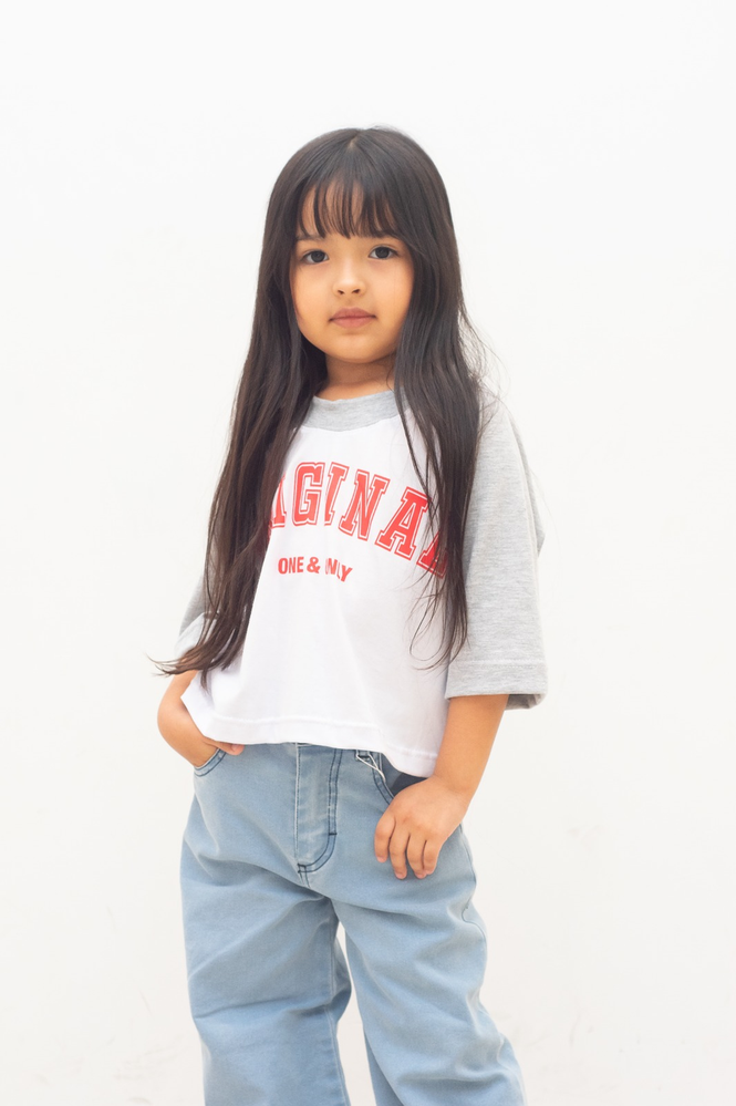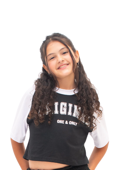 negra magas blancas, blanca letras negras, blanco con manga gris estampa azul y rojo.
