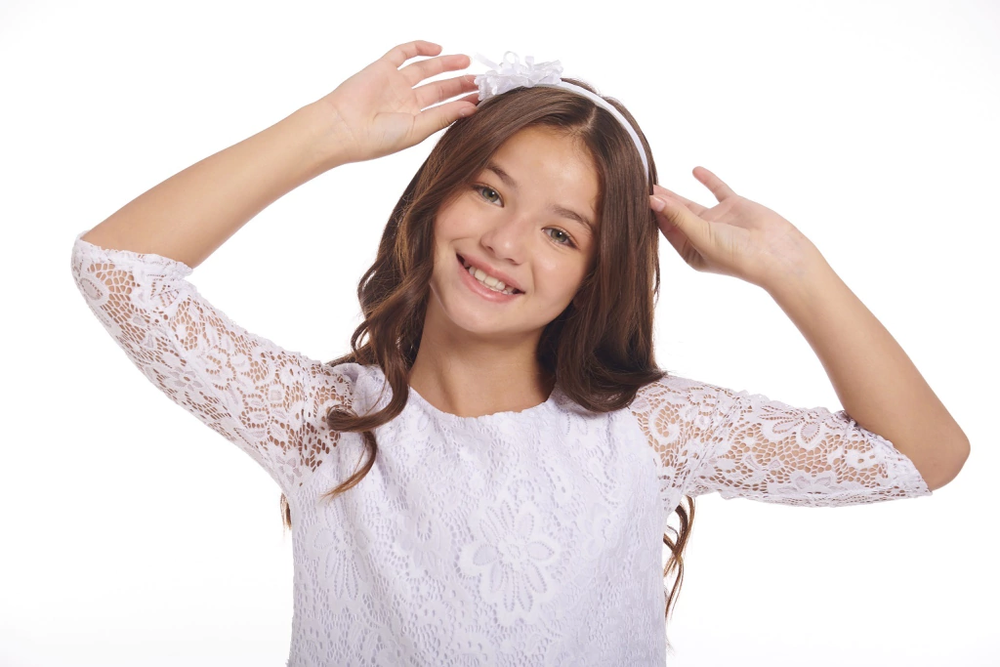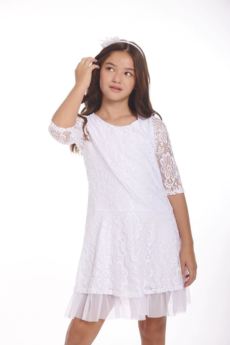 Mangas 3/4 solo de encaje y falda con recorte en la cadera.