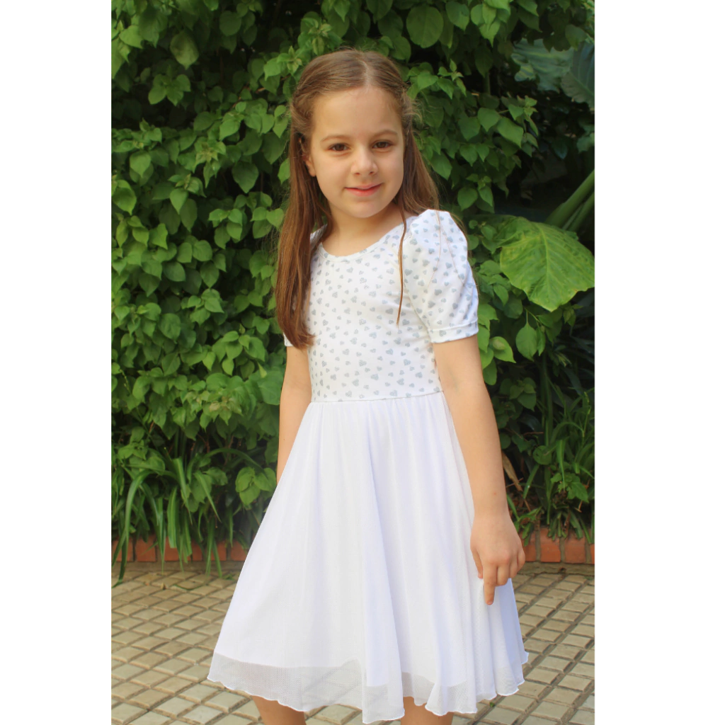 Vestido con falda de tul y canesu con corazones con gliters.